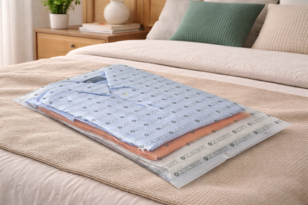 Un alleato perfetto per sistemare abiti stagionali, tessuti o piccoli oggetti è il Set 8 sacchetti milleusi di Ordinett: si tratta di sacchetti trasparenti riutilizzabili e richiudibili, ideali per proteggere capi dalla polvere e mantenere ordine negli armadi, nei ripostigli o nelle valigie.